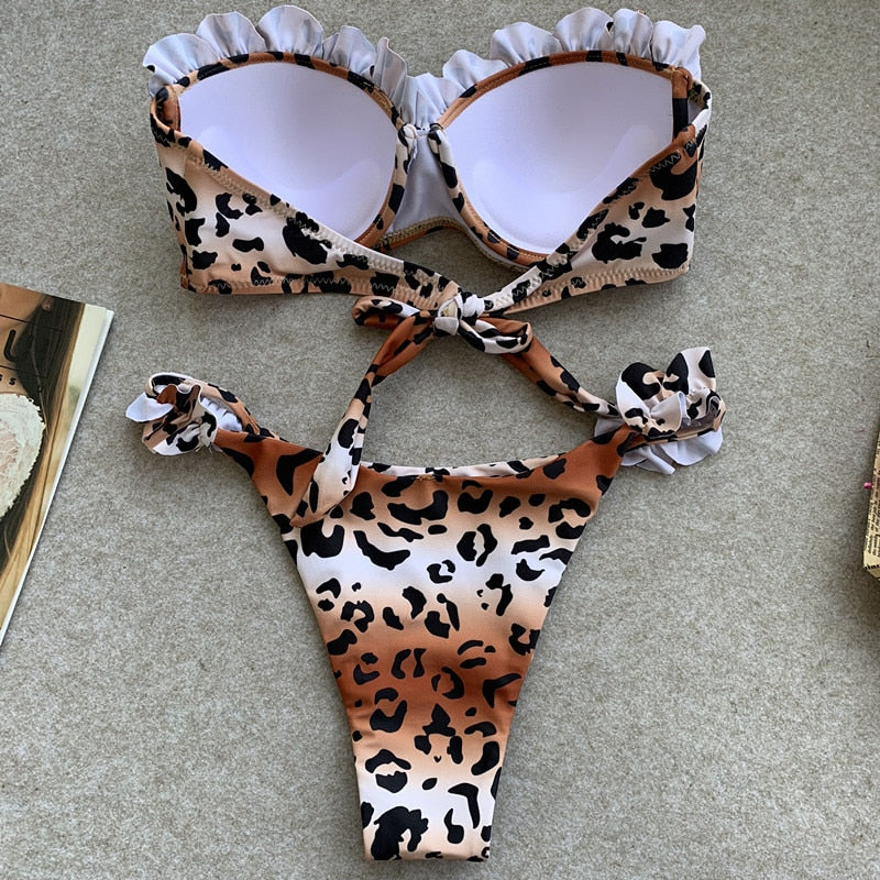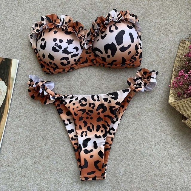 Pay in 4 instalments with AfterPay, Buy Now Pay Later2 Piece Padded Push Up Strapless Ruffle Bra Low Waist Bikini Swimwear Set