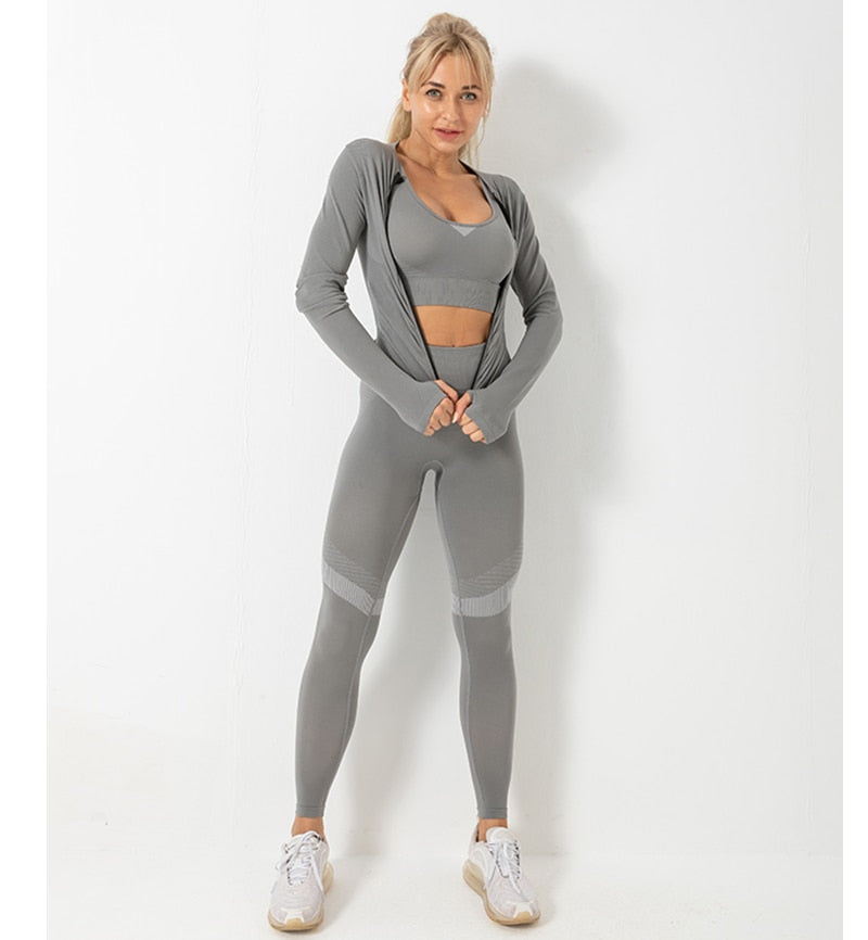 3 Piece Seamless Women Yoga Sets Ladies Sport Gym suits Wear Running Clothes women Fitness Sport Yoga Suit Keep warm yoga clothing