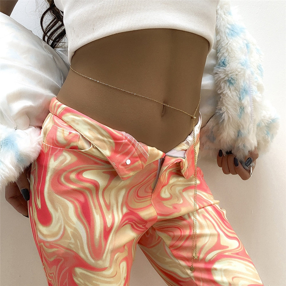 Simple Star Pendant Waist Chain Minimalist Gold Color Adjustable Belly Chain Bikini Chain Summer Beach Jewellery