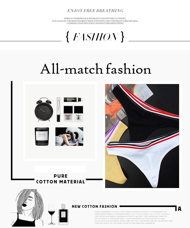 Sports Style Low Waist Thong No Trace Cotton T Panties G String Bikini Underwear