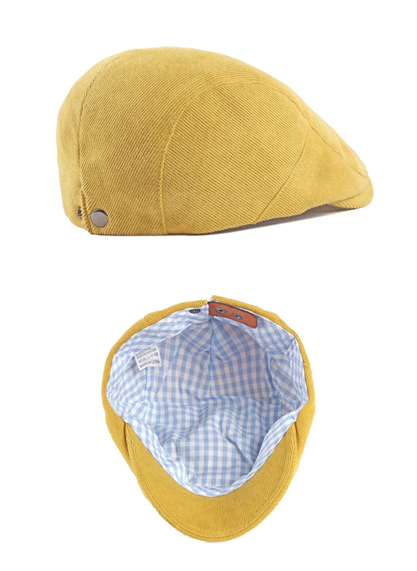 Spring Autumn Berets Hat Men's knitting Visor Cap Casual Fashion Women Beret Solid Yellow Blue Peaked Flat Cap Duckbill Hat