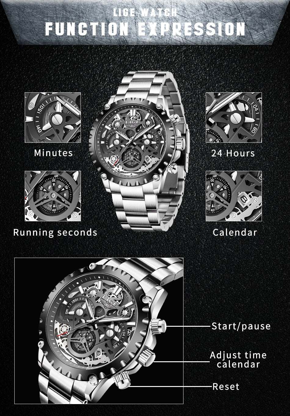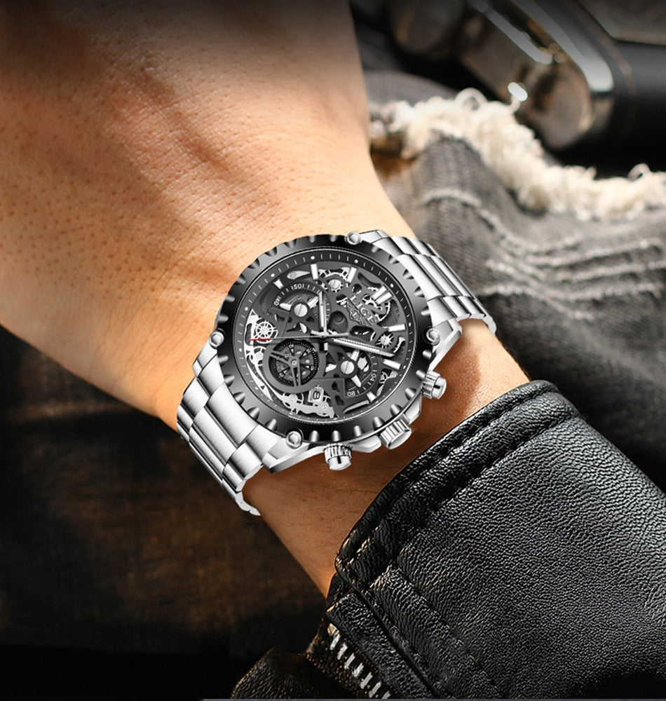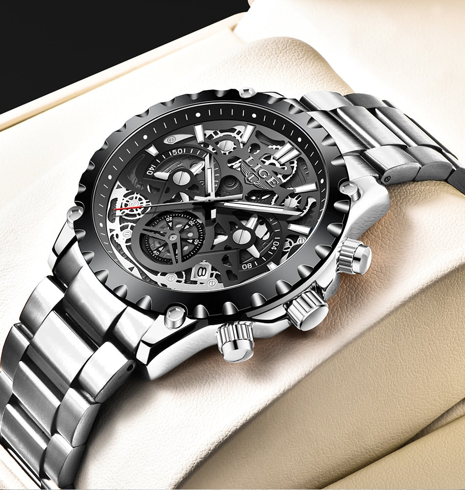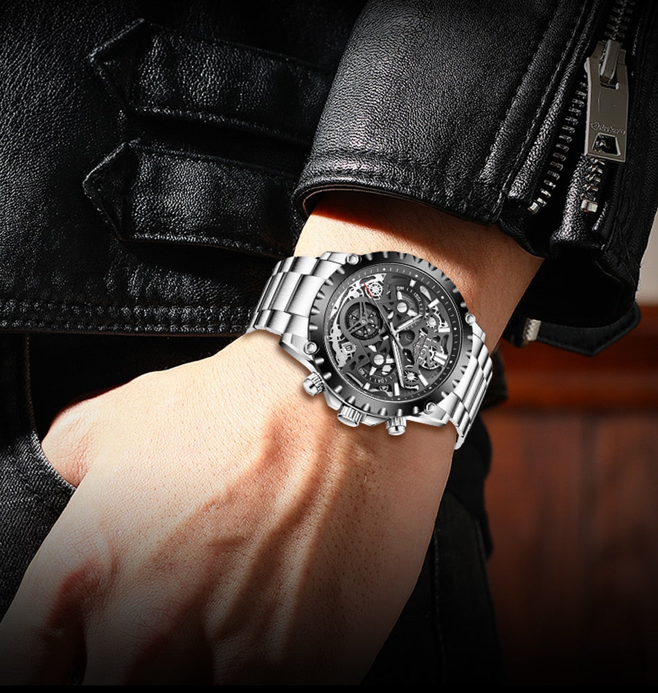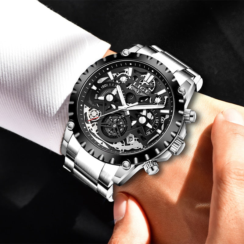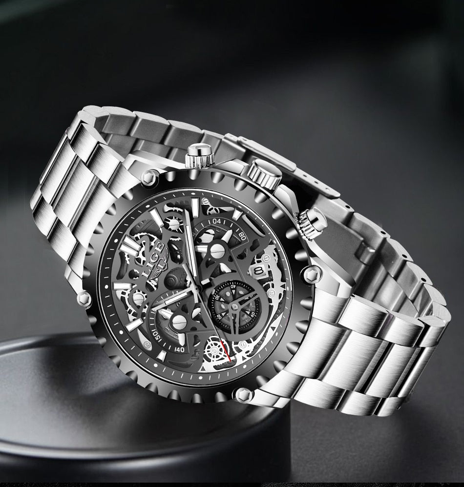 Pay in 4 instalments with AfterPay, Buy Now Pay LaterStainless Steel Hollow Mens Watches Top Brand Sport Waterproof Quartz Watch Men Military Wristwatch