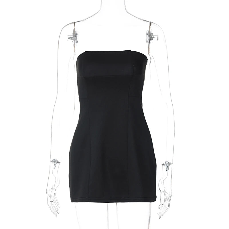 Strapless Party Club Evening Streetwear Bodycon Black White Short Mini Summer Dress