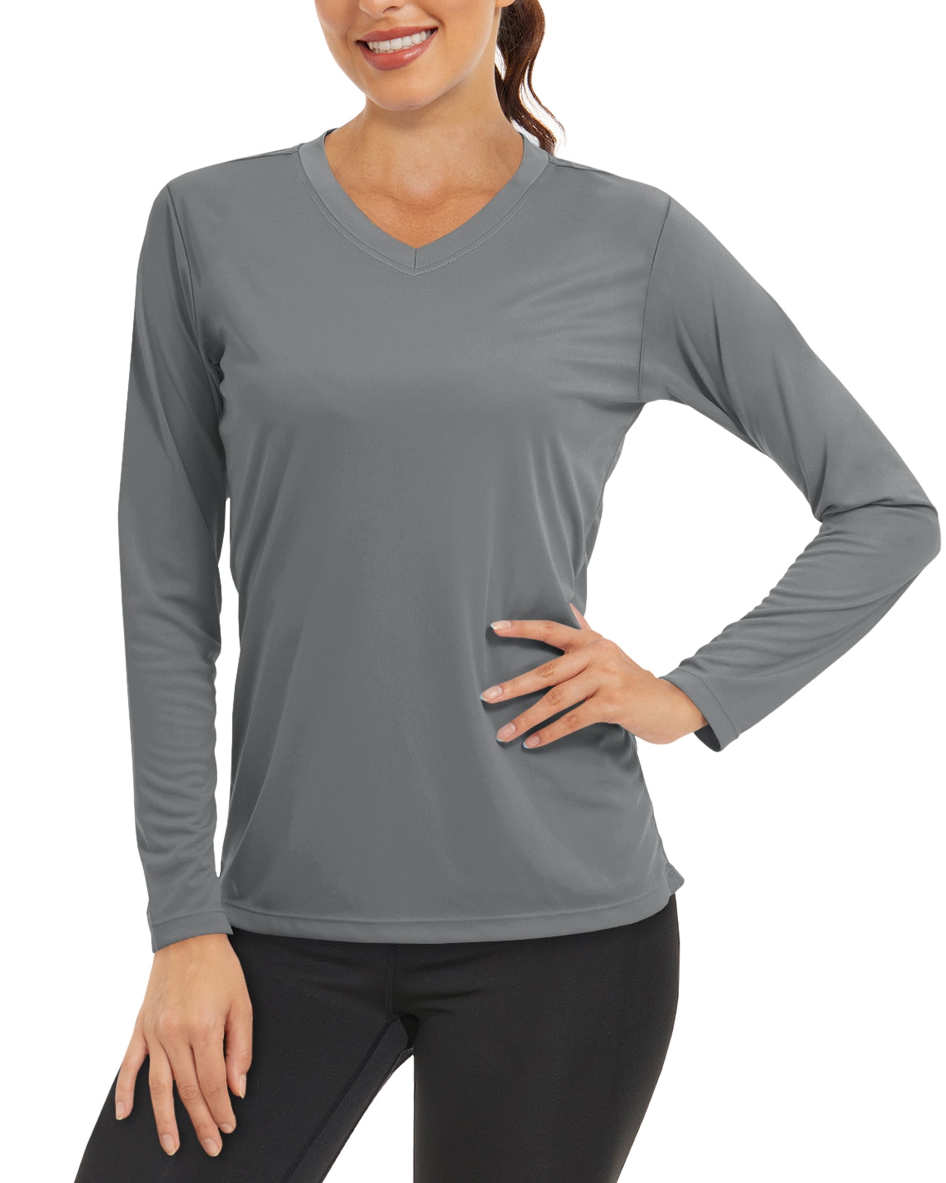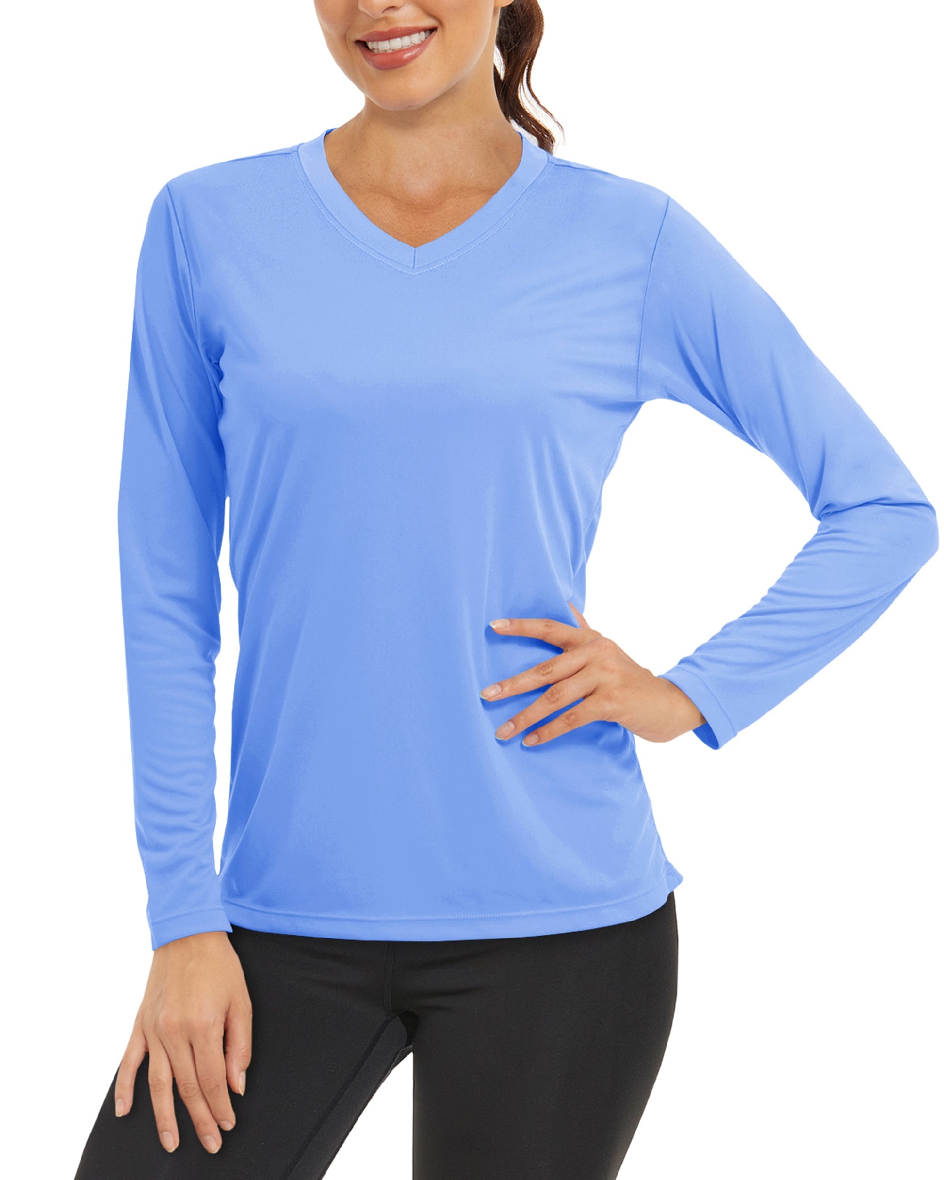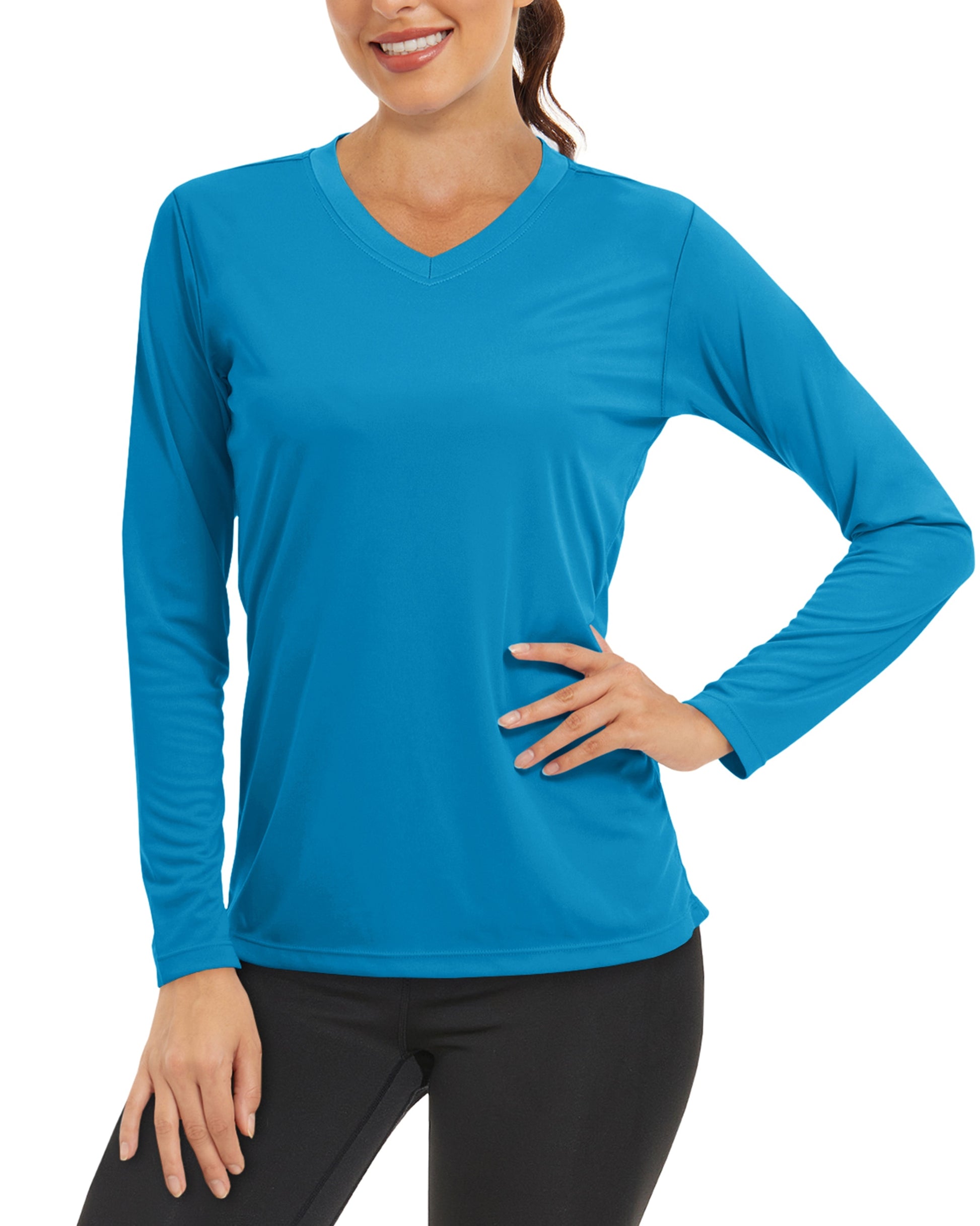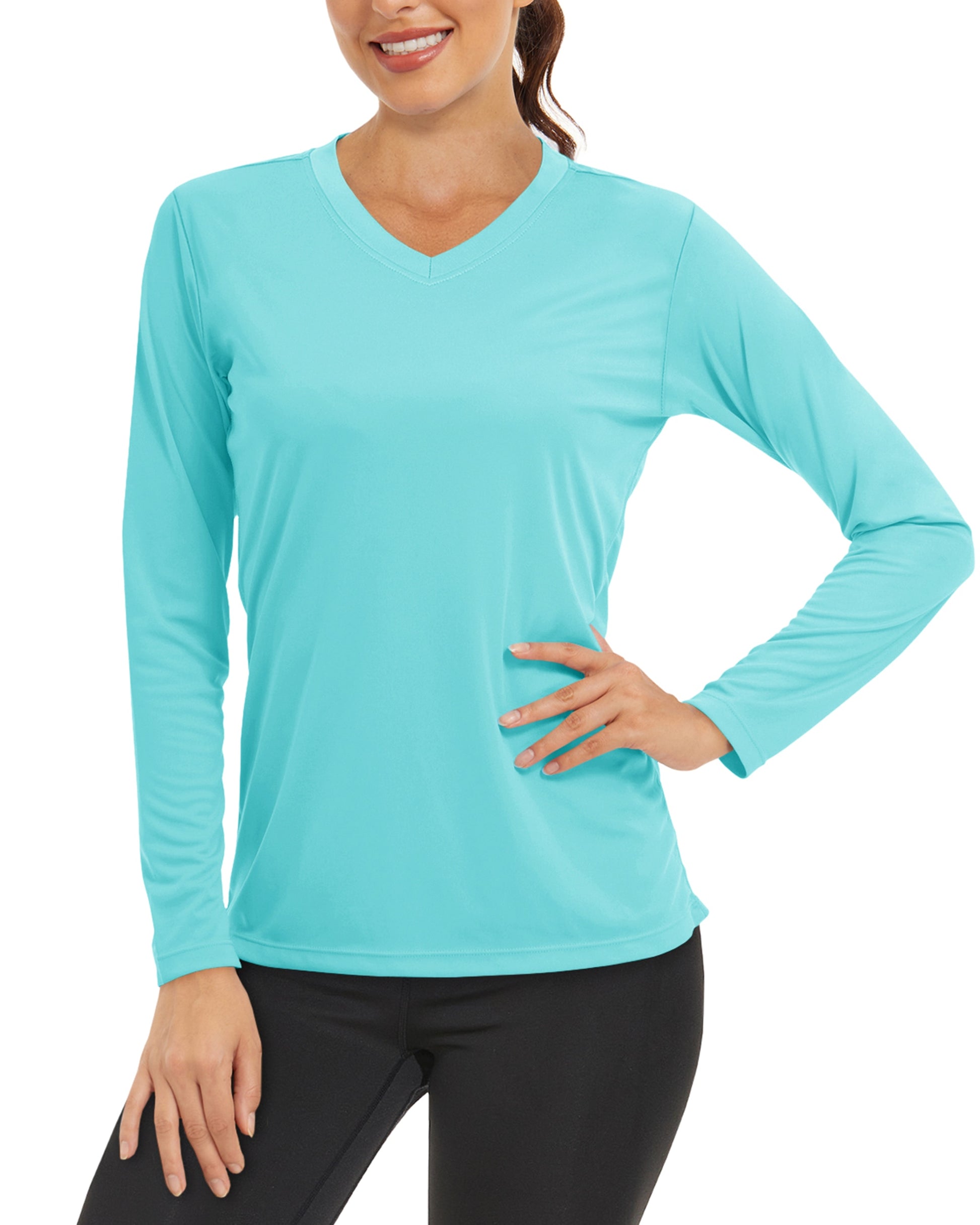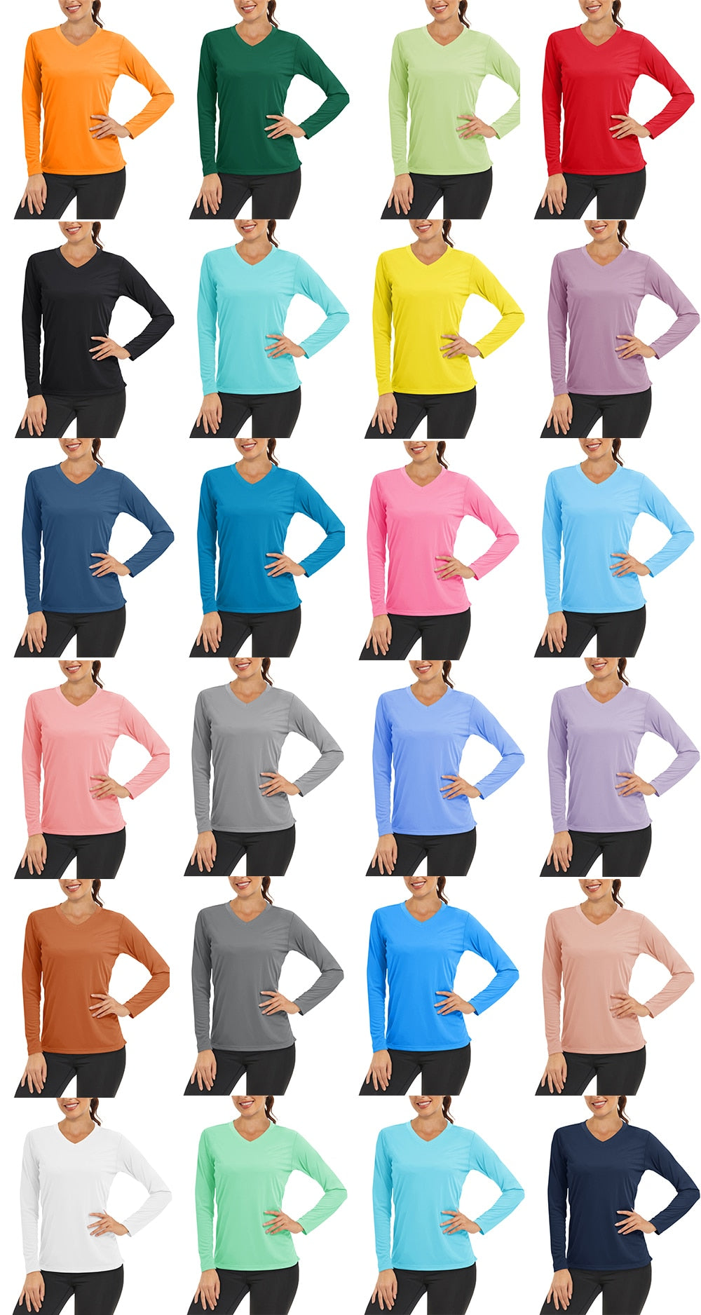 Summer Sun Protection Shirts UPF 50+ Womens Long Sleeve V Neck Shirts Lightweight Quick Dry Tee Shirts Outdoor Pullover