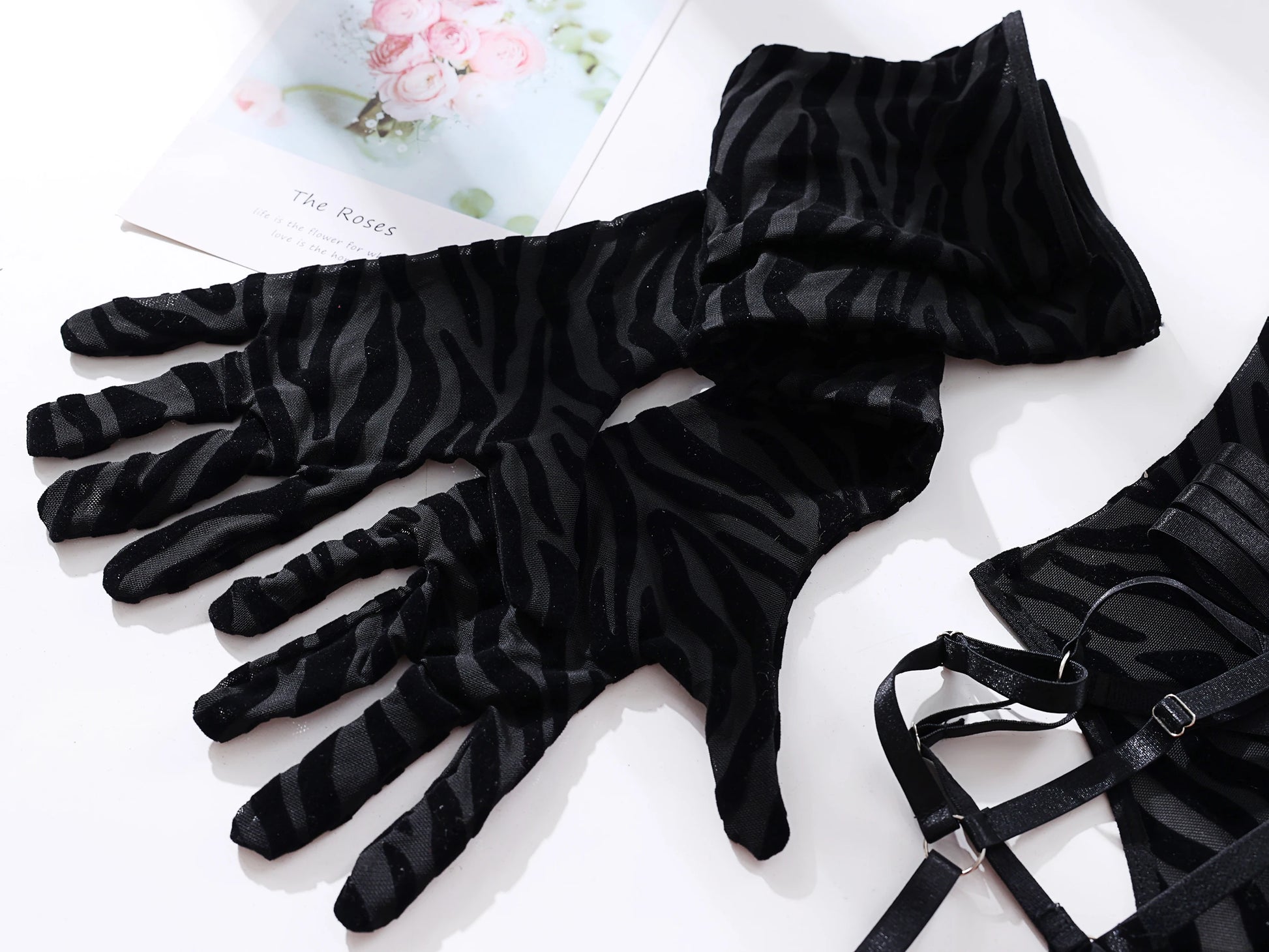 Tight Fitting Lace Bodysuit With Gloves Garter Night Club Outfit Mesh Top Lingerie Set