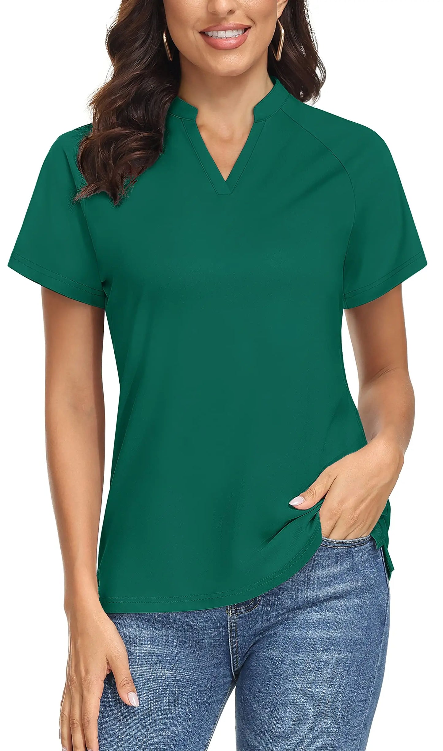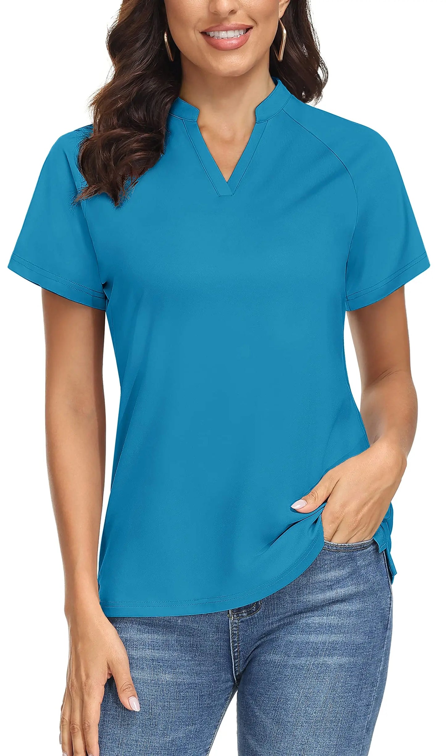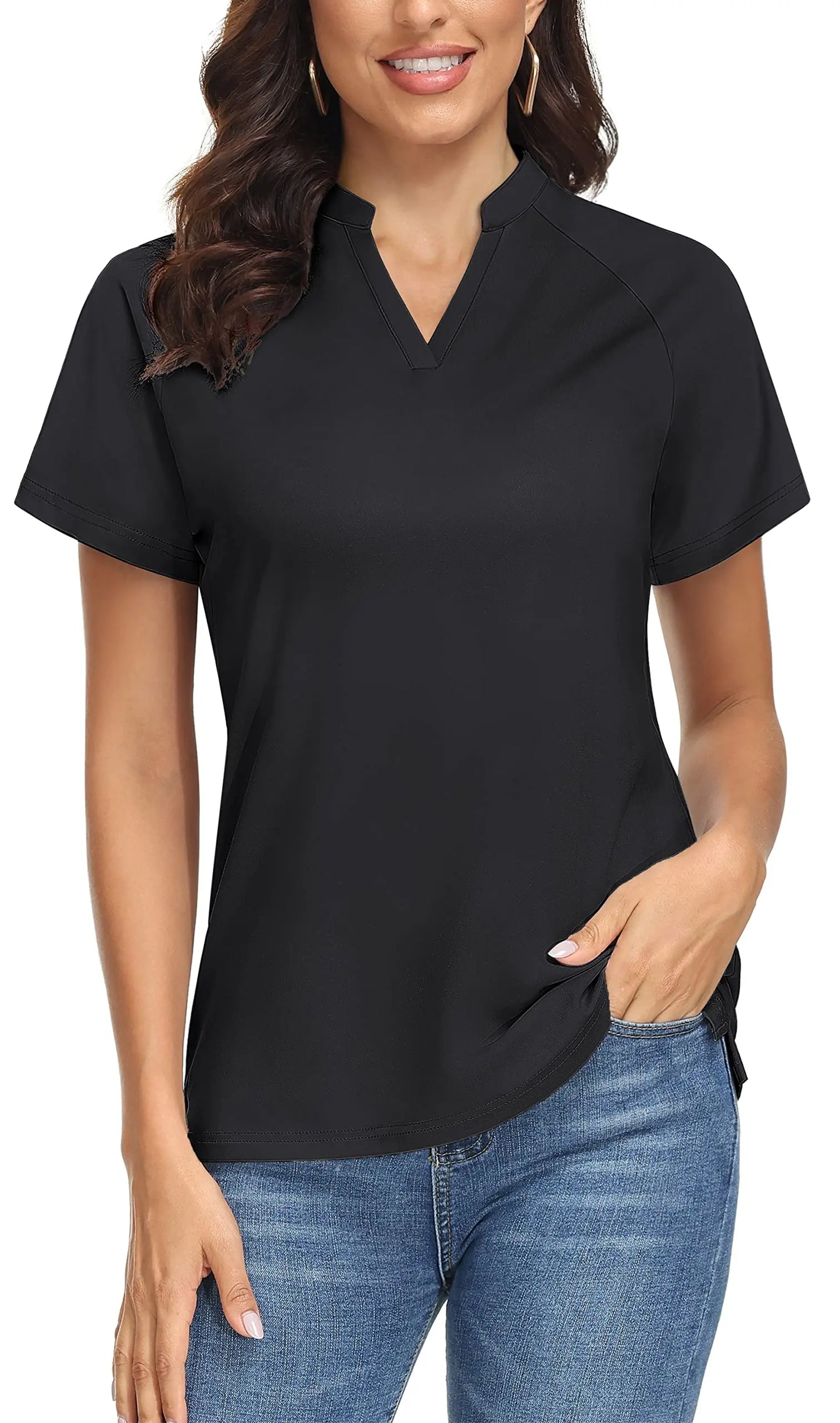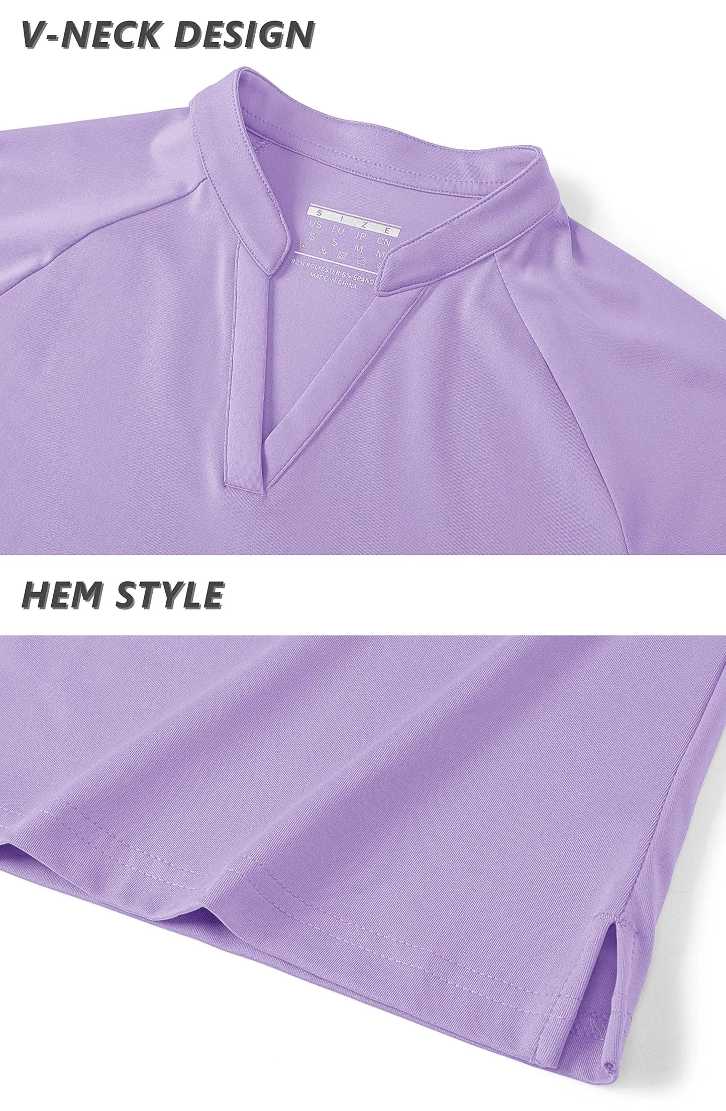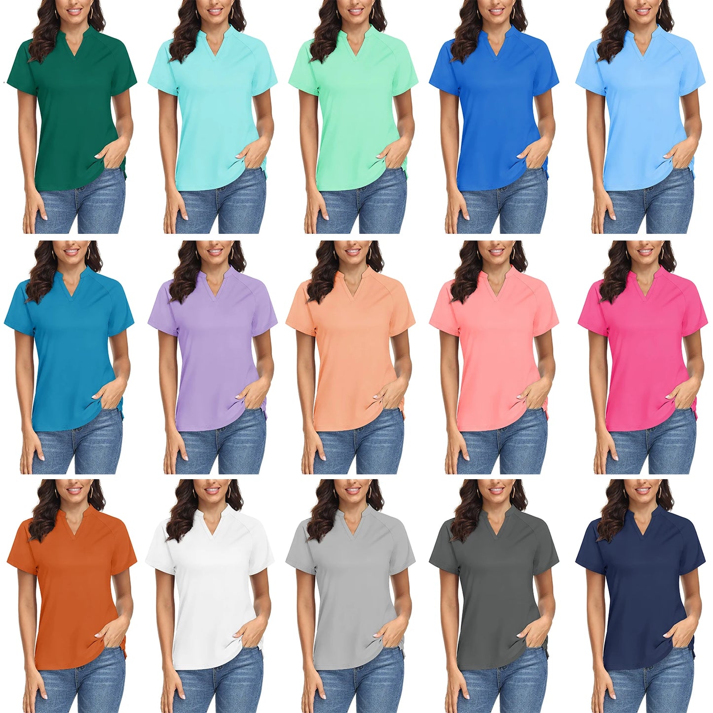 UPF 50+ V-neck Short Sleeve Golf Polo Shirts Women's Quick Dry Sun/UV Protection T-shirts Outdoor Sports Pullover Tops