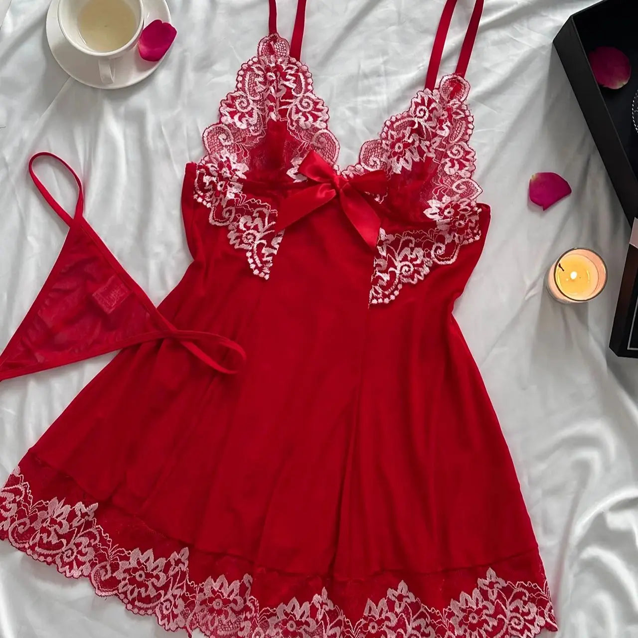 Women's Lace Sleepdress Nightdress Ladies Lace Nightgowns Mesh Thin Strap Night Dress Set