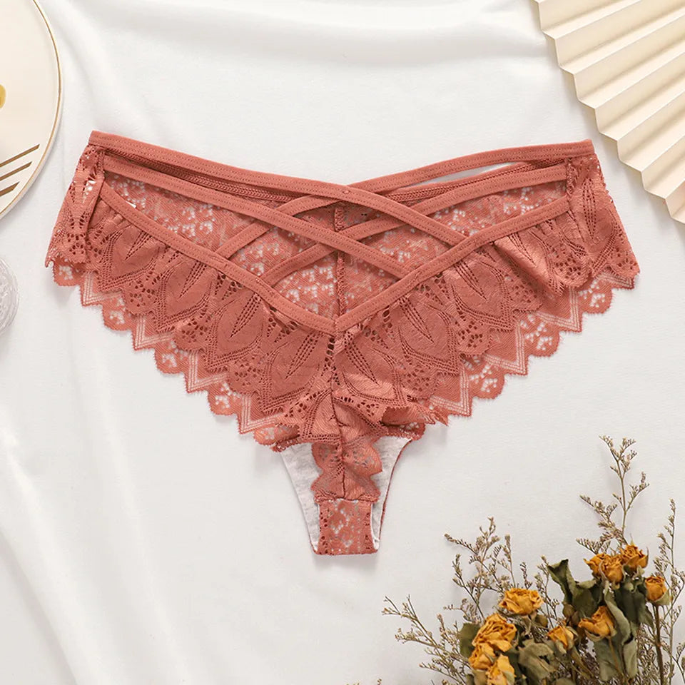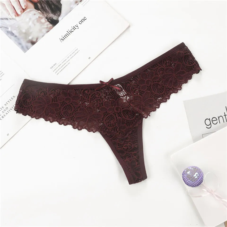 Women's Panties Lace Underwear Low Waist Briefs Hollow Out G String Underpants Solid Comfortable Female Lingerie
