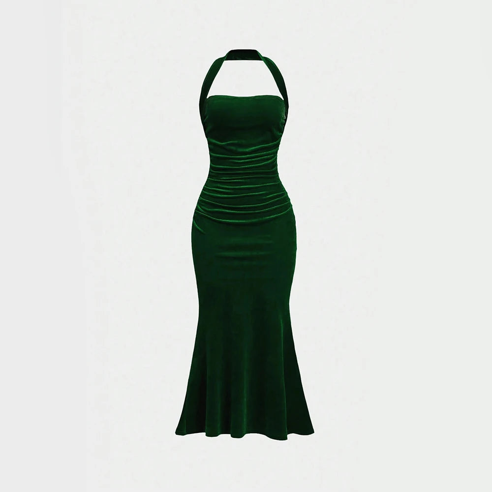 Women's Summer Elegant Plain Sleeveless Halter Neck Wrap Maxi Prom Dresses