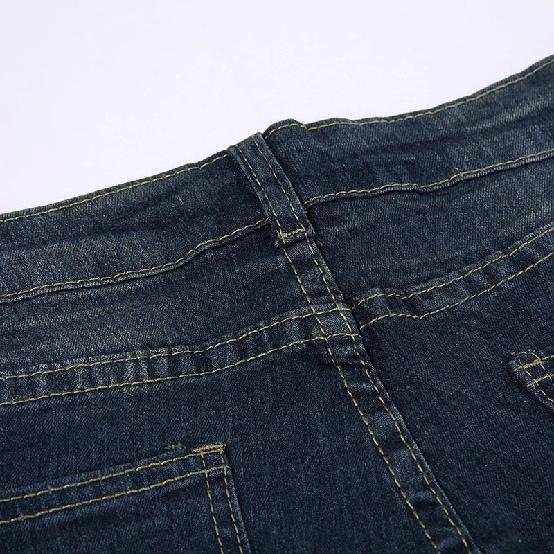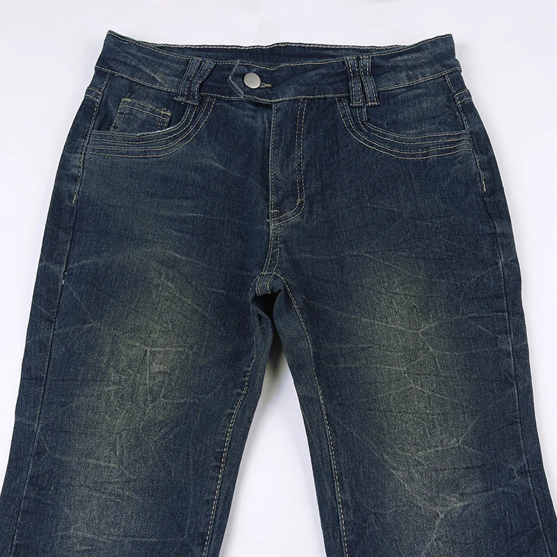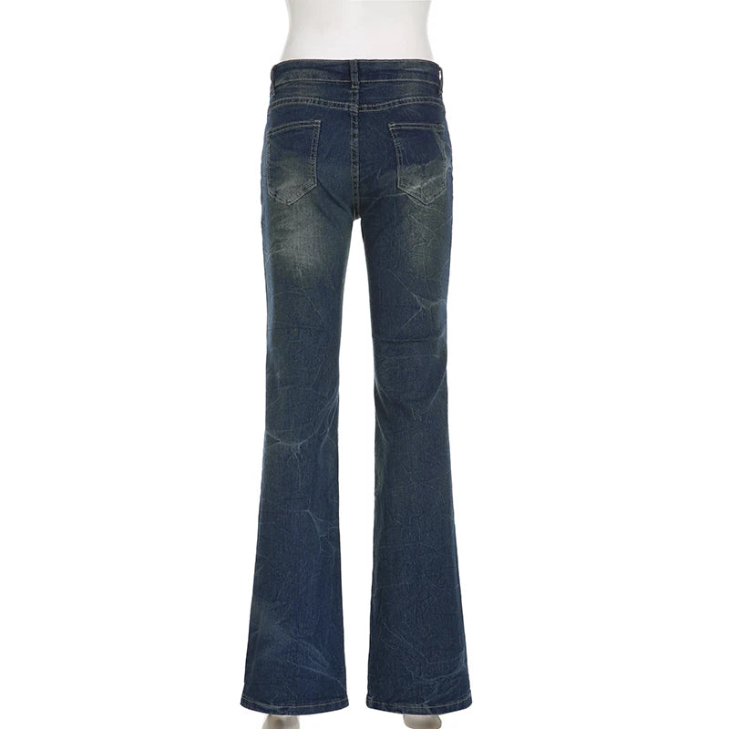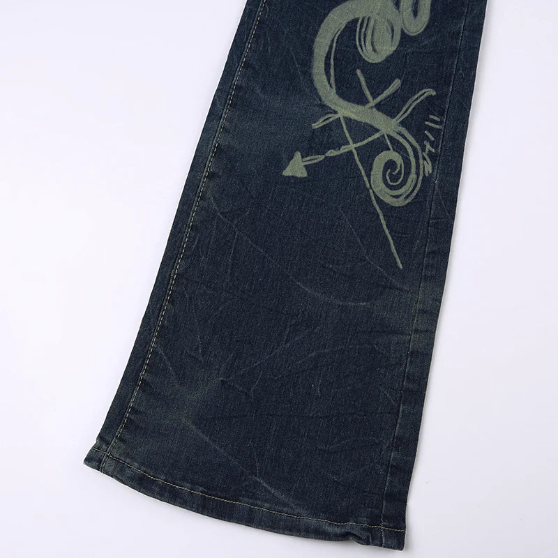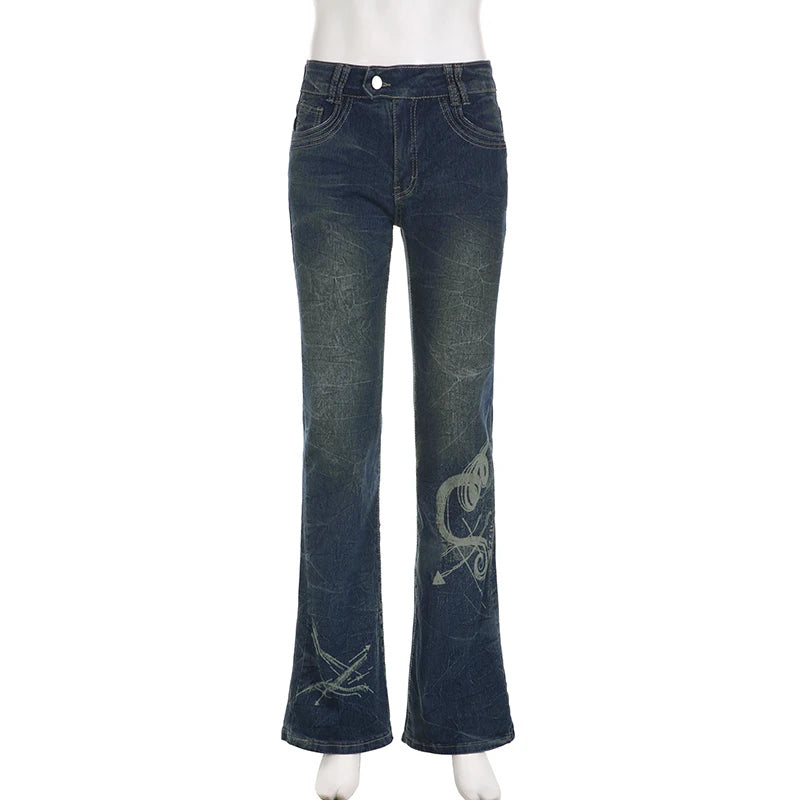 Y2K Grunge Jeans Chic Skinny Low Rise Flared Women's Vintage Heart Printed Denim Trousers Boot Cut Pants